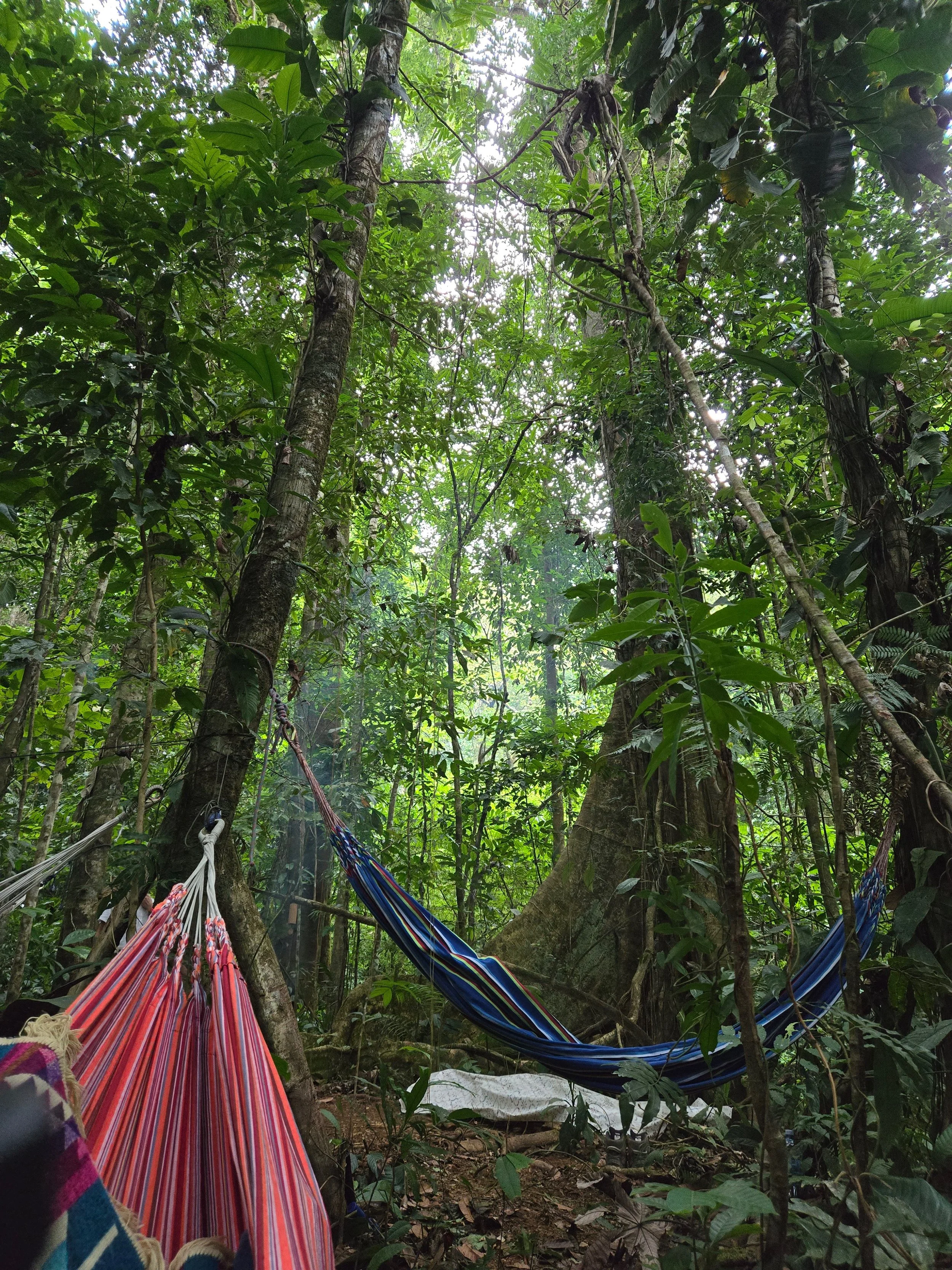 A full-night ceremony in the jungle, held in hammocks with tarps