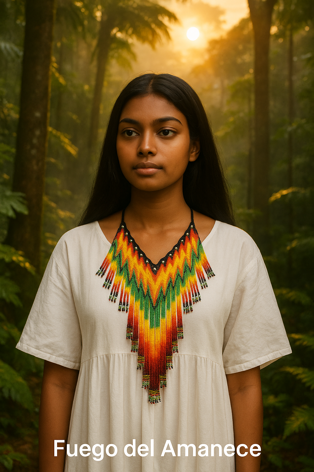 Every piece we offer carries a story — handmade Amazonian beadwork, ceremonial and indigenous-inspired apparel, jewelry, woven mochilas, and sacred accessories created in prayer and intention by ancestral artisans. These are not just adornments, but expressions of lineage, devotion, and the artistry of the soul.